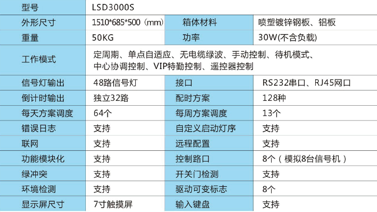 LSD3000S型交通信號控制機(jī)采用,穩(wěn)定、可靠的模塊化多處理器、多總線系統(tǒng)結(jié)構(gòu)。采用高速ARM控制器及大規(guī)模集成電路,實(shí)時運(yùn)算道路交通信息,如道路交通狀態(tài)、道路車流量。全部信號機(jī)可以組成城城網(wǎng),完成于指揮中心信息交換。根據(jù)城市交通模型進(jìn)行云計算,計算數(shù)據(jù)。帶有一塊7寸液晶觸摸顯示屏,和一個數(shù)字鍵盤。
